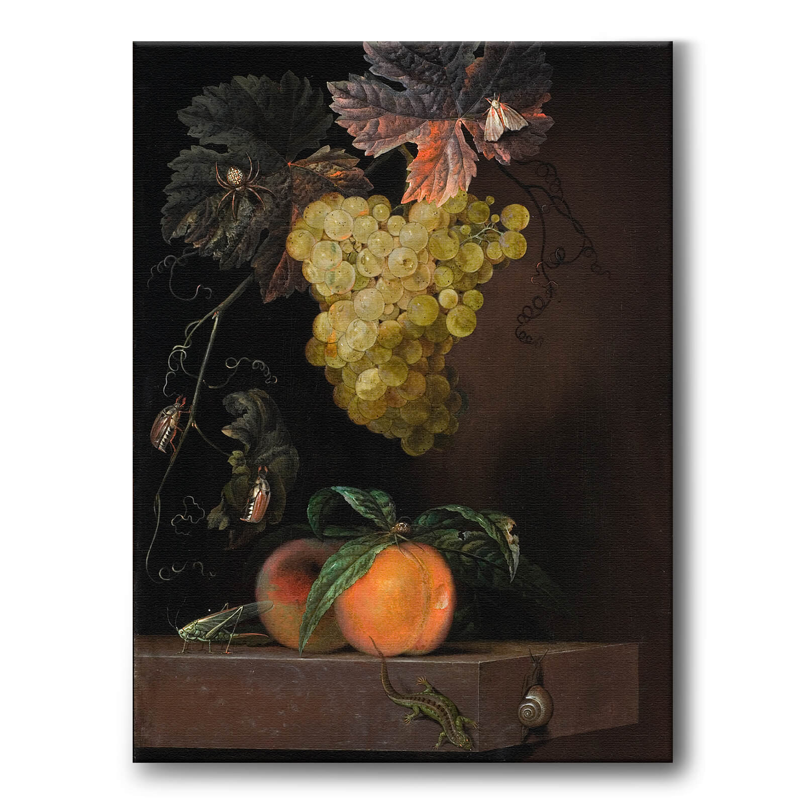 Canvas with motif of the painting Still Life with Fruit, Lizard and Insects from 1664. Ottmar Elliger, born 1633 and died 1679, was a Swedish-German artist who flourished during the Baroque period. He is best known for his portraits and still life paintings.