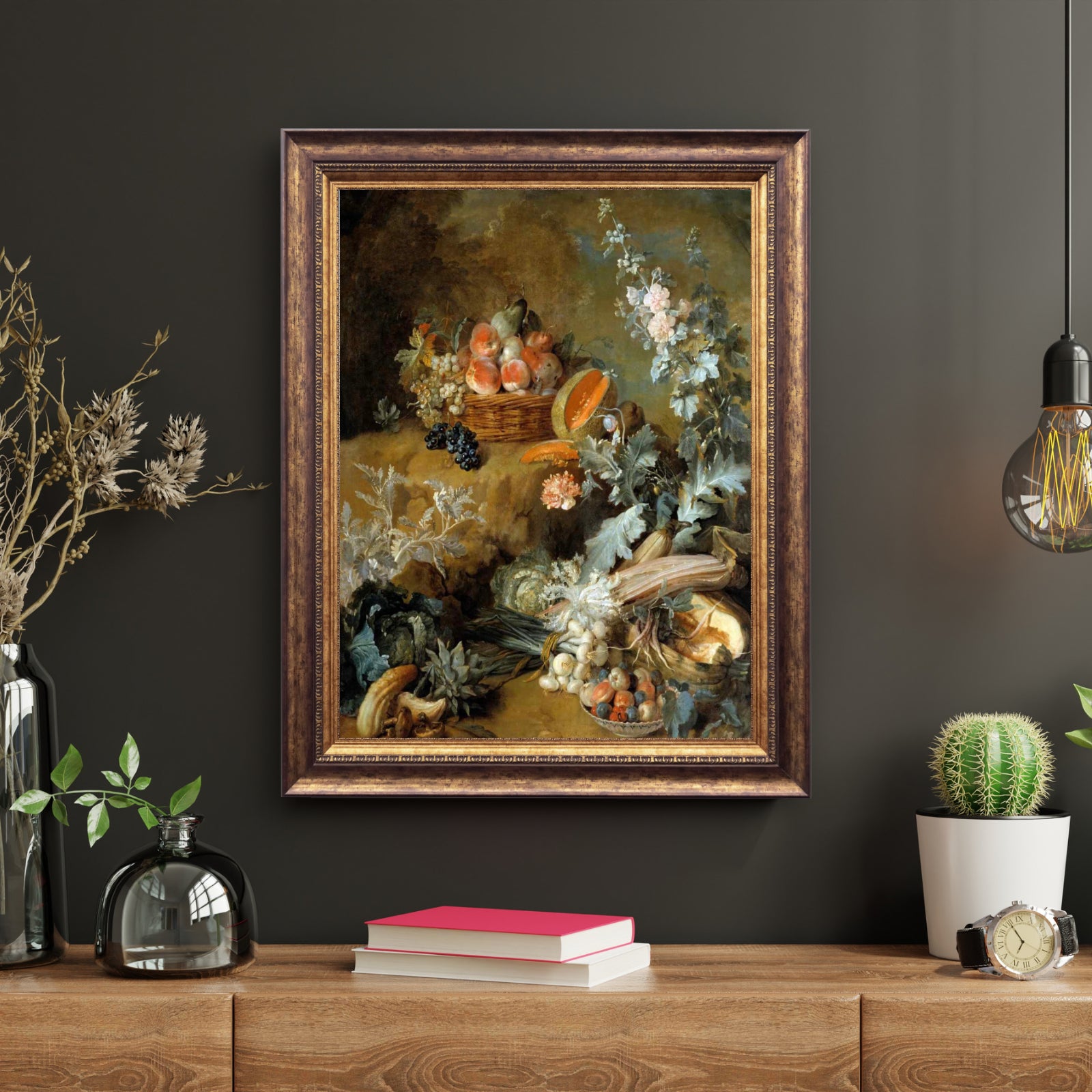 In this painting, Oudry has depicted a detailed and colorful composition of various fruits and vegetables. Still life paintings during this period were often more than just a representation of natural objects; they were also a form of symbolism and social commentary. Fruits and vegetables could represent prosperity, abundance and even moral messages, depending on which objects were chosen and how they were arranged.