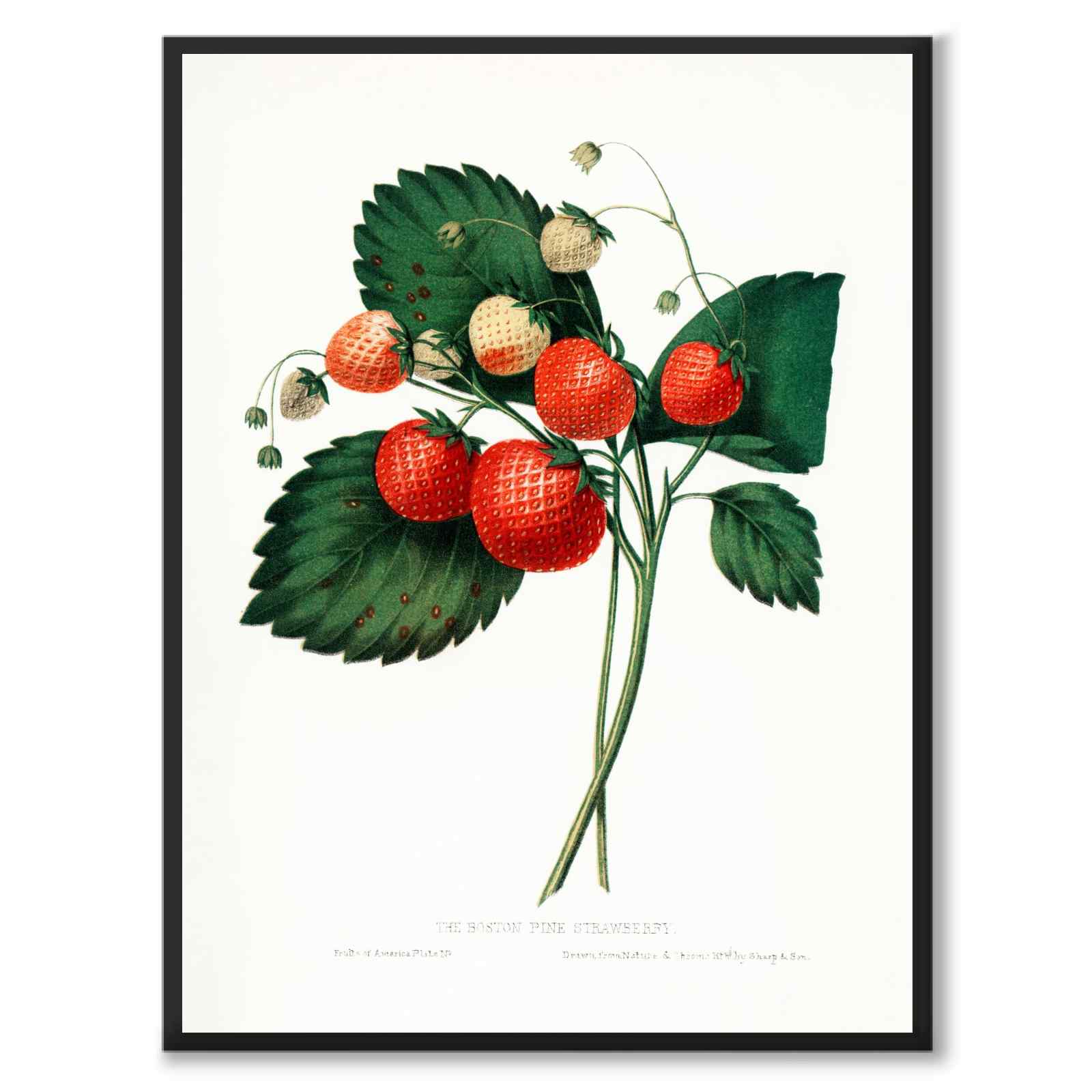 Poster with a classic illustration of a strawberry plant from 1852 by Charles Hovey . In the picture we see, among other things, the text The Boston Pine Strawberry.