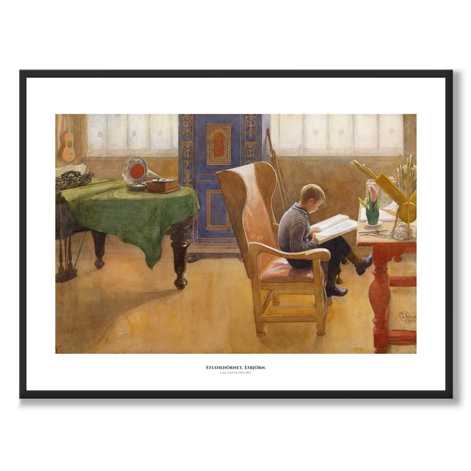 Poster with the painting The study corner. Esbjorn by the Swedish artist Carl Larsson from 1912. The painting is part of Larsson's series of works depicting his family's life in the idyllic home in Sundborn, Dalarna.