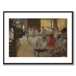 A fantastic poster with the painting The Dance Class created by Edgar Degas in 1873. In the picture we see a row of ballet dancers in beautiful dresses who can be thought of as preparing for a performance.