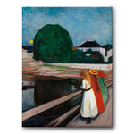 Canvas with the painting Pikene på Broen , or The Girls on the Bridge , by the iconic Norwegian artist Edvard Munch. The work was painted in 1901 and depicts some girls on a bridge in Munch's summer town, the small town of Åsgårdstrand in Norway.