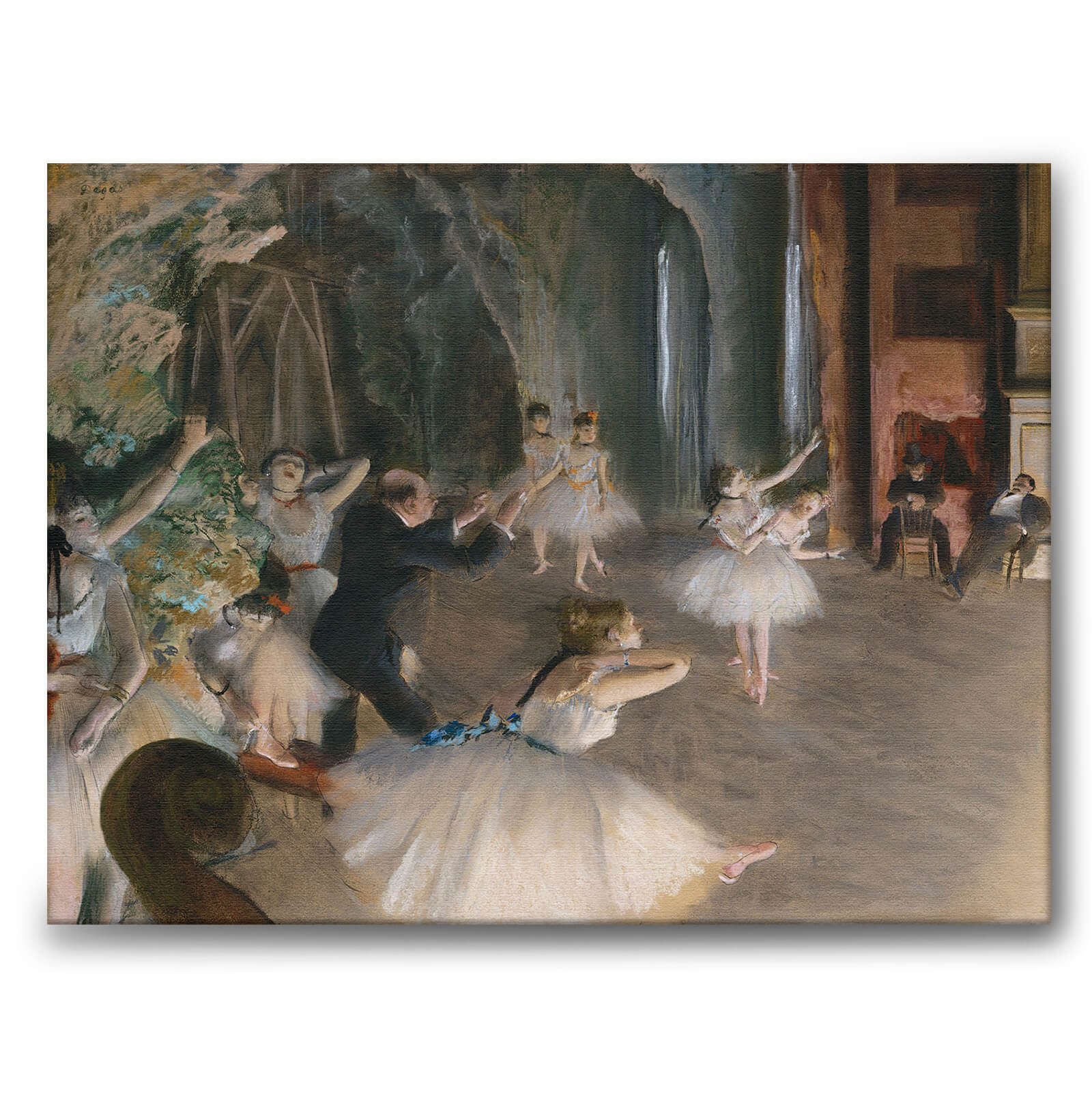 Canvas print featuring a beautiful painting from 1874 by the iconic artist Edgar Degas. The painting is called The Rehearsal Onstage and is one of two versions of the motif.