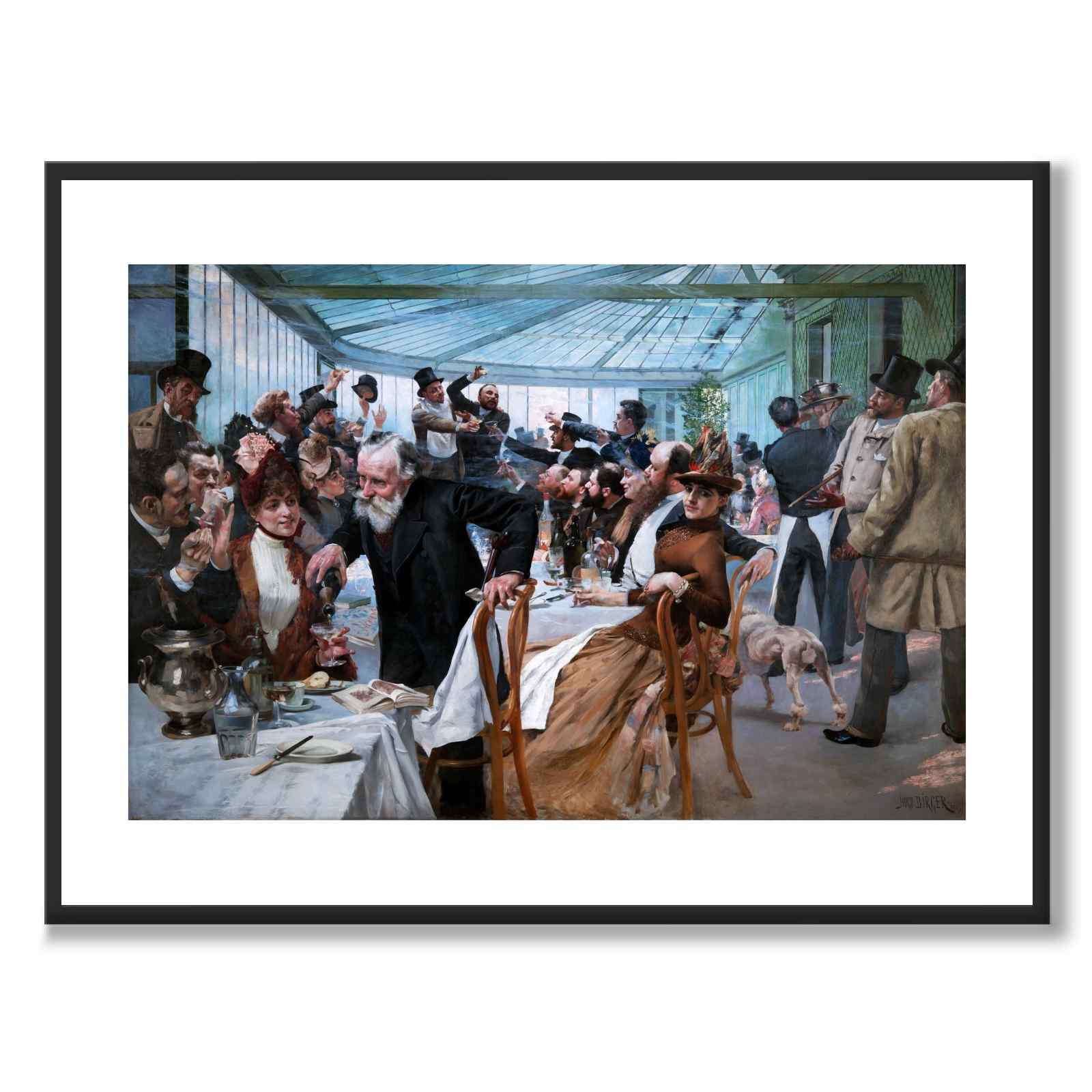 Poster with the painting Scandinavian artists' breakfast in Café Ledoyen in Paris, created in 1886 by the Swedish artist Hugo Birger. The painting depicts the Nordic artists' celebratory breakfast at Café Ledoyen, where they used to gather on the Salon's opening day. The painting has an enormous wealth of detail.