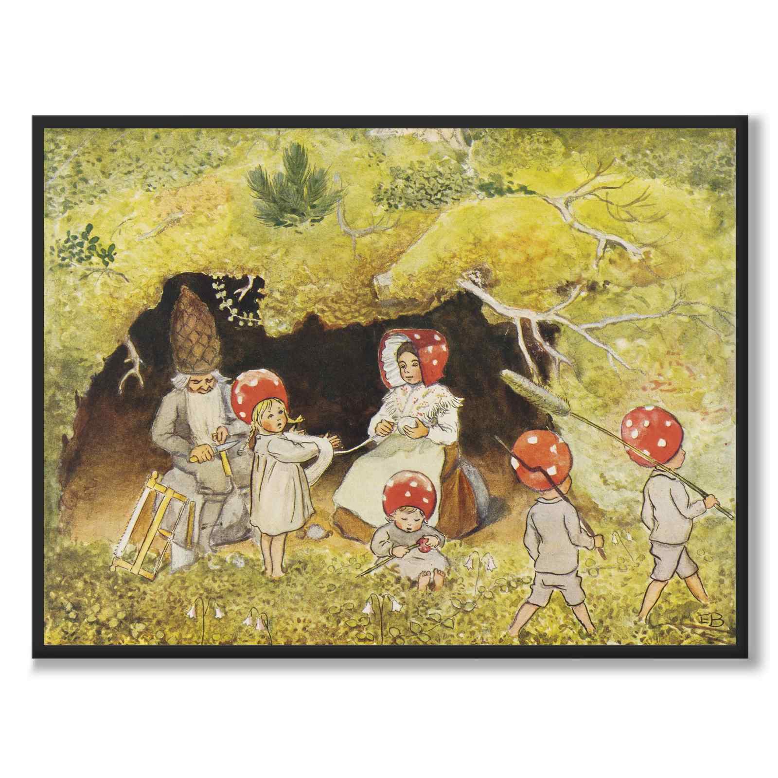 Poster with an illustration from one of Sweden's most loved children's books of all time: Tomtebobarnen by Elsa Beskow from 1910.