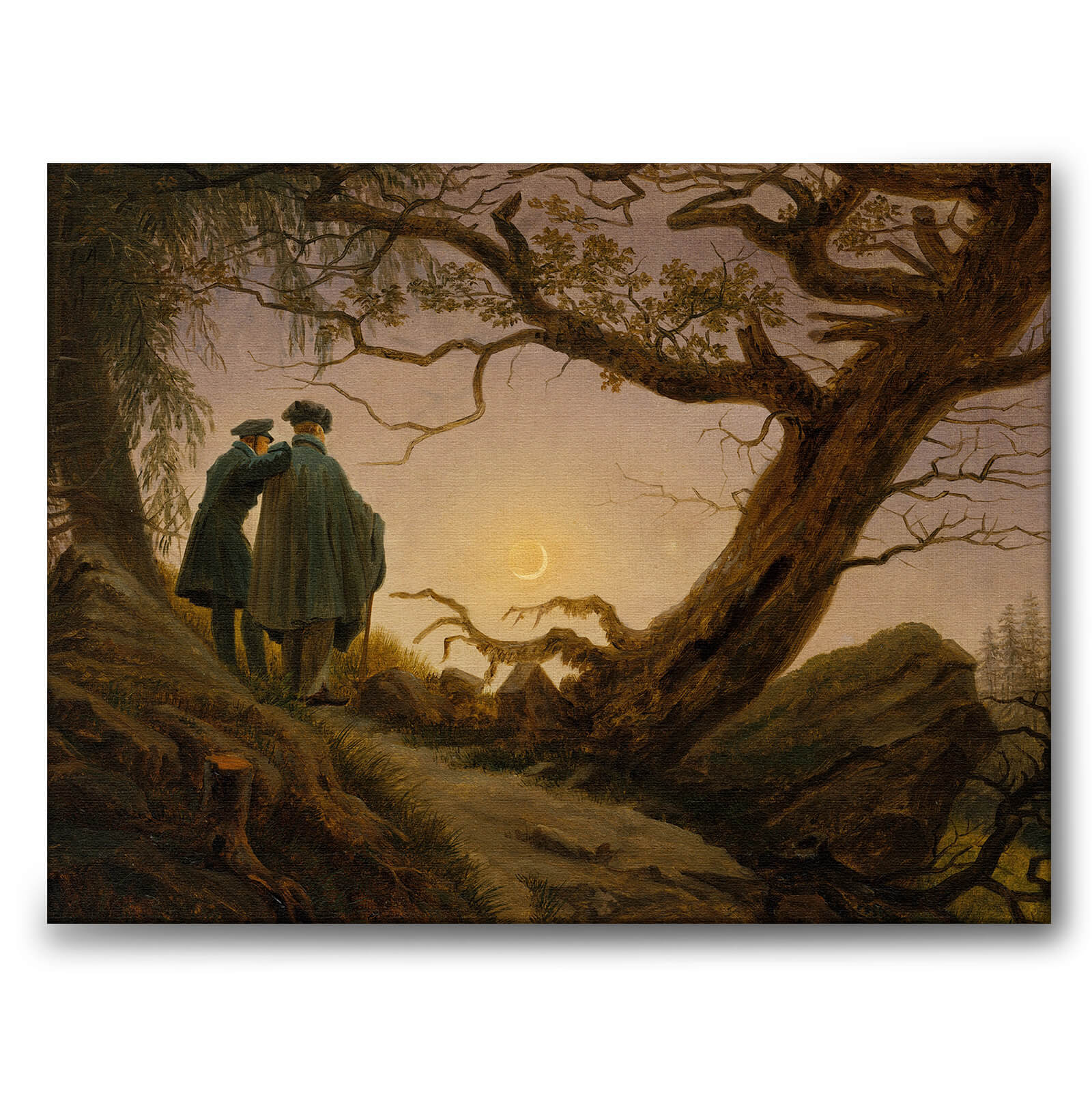 Canvas with the beautiful painting Two Men Contemplating the Moon . The painting was created by the German artist Caspar David Friedrich around 1825-30. Friedrich is considered one of the most famous landscape painters of Romanticism.