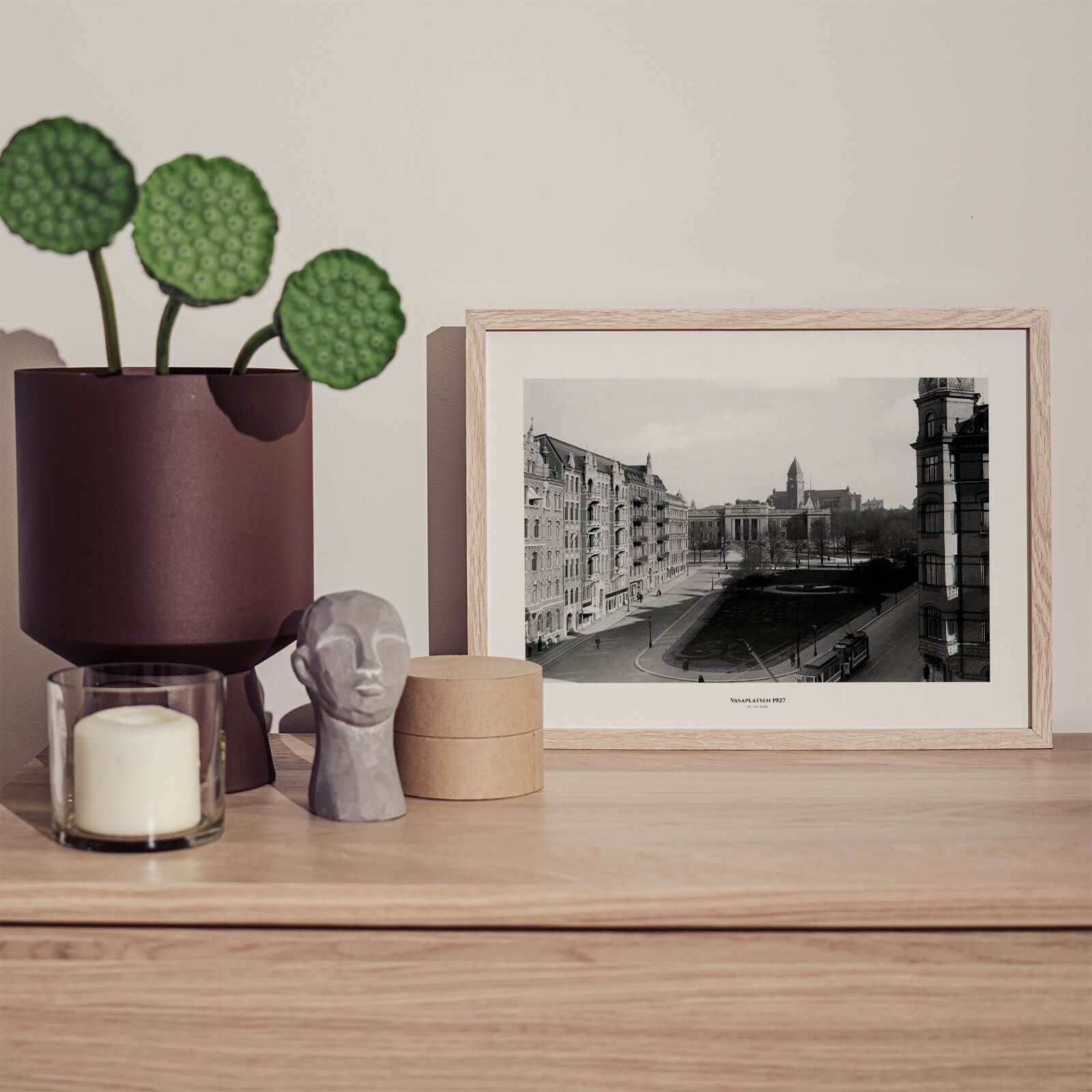 Vasaplatsen got its name in 1882, and was completed in 1897. The area by Vasaplatsen was called Flygarns Haga, after the police commissioner Anders Fredrik Flygare, who still in the late 1850s owned a house at the street address that is today called Vasaplatsen 9. He also ran a successful trade there.