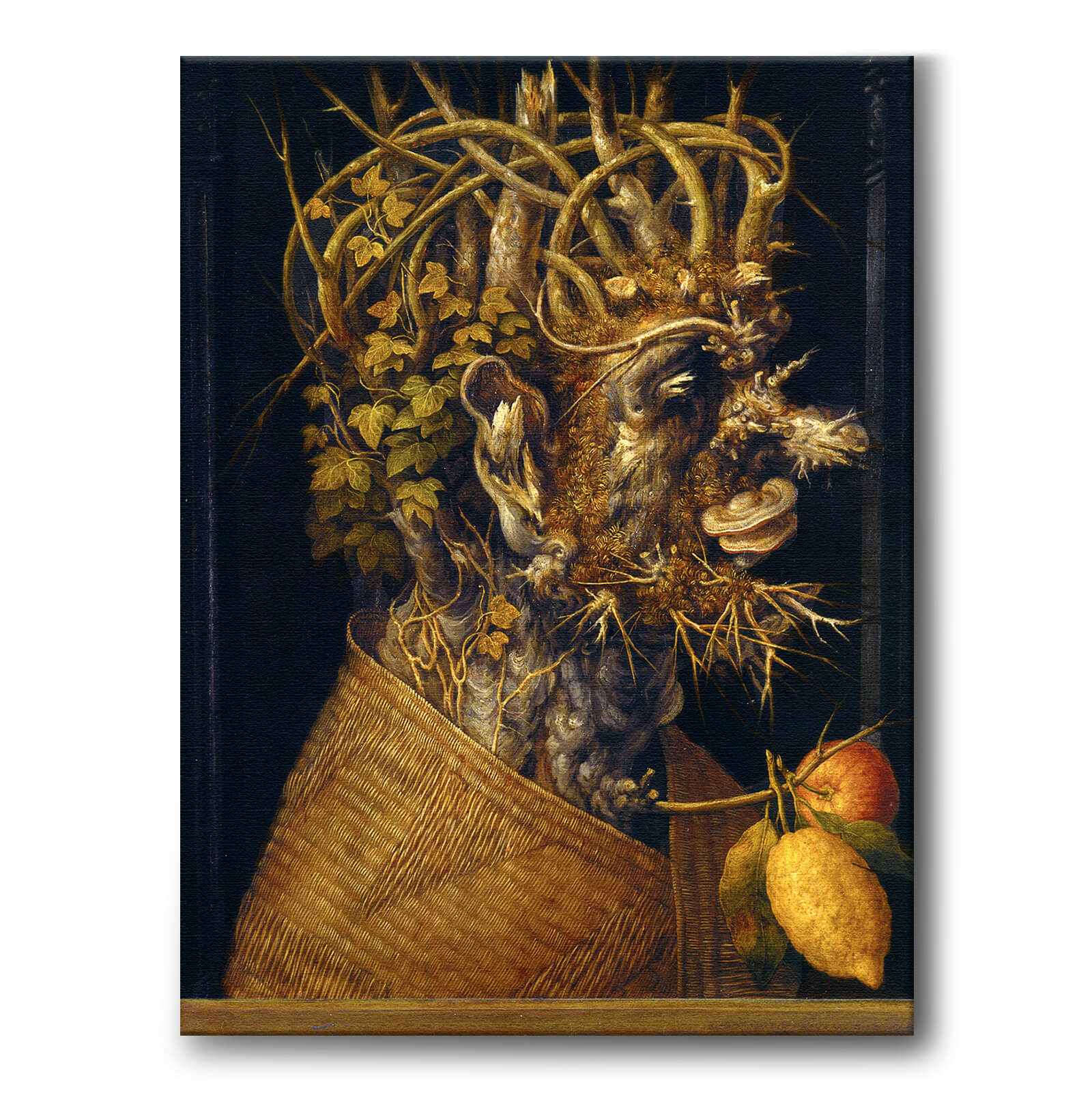Canvas with the painting "Winter" by the Italian Renaissance painter Giuseppe Arcimboldo (1527-1593) who is known for his imaginative portraits where he uses objects such as fruit, flowers and books to recreate faces.
