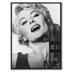 Poster med ett vintagefotografi av Monica Zetterlund taget år 1960 av Sjöberg. Fotografiet fångar Monica Zetterlund i ett av sina mest ikoniska uttryck nära mikrofonen, med blicken mot publiken och rösten på väg att fylla rummet.