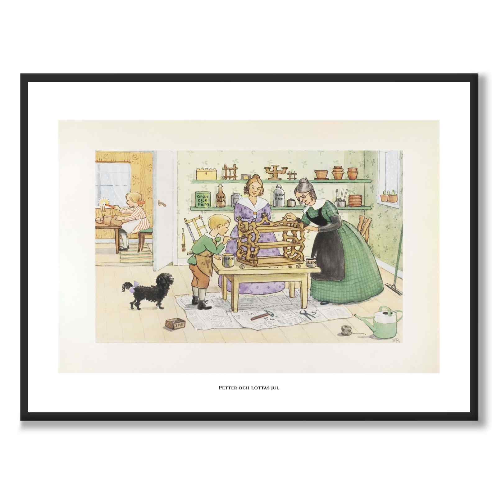 Poster med illustrationen Petter och Lottas jul (år 1947) av den svenska författaren och illustratören Elsa Beskow (1874–1953).