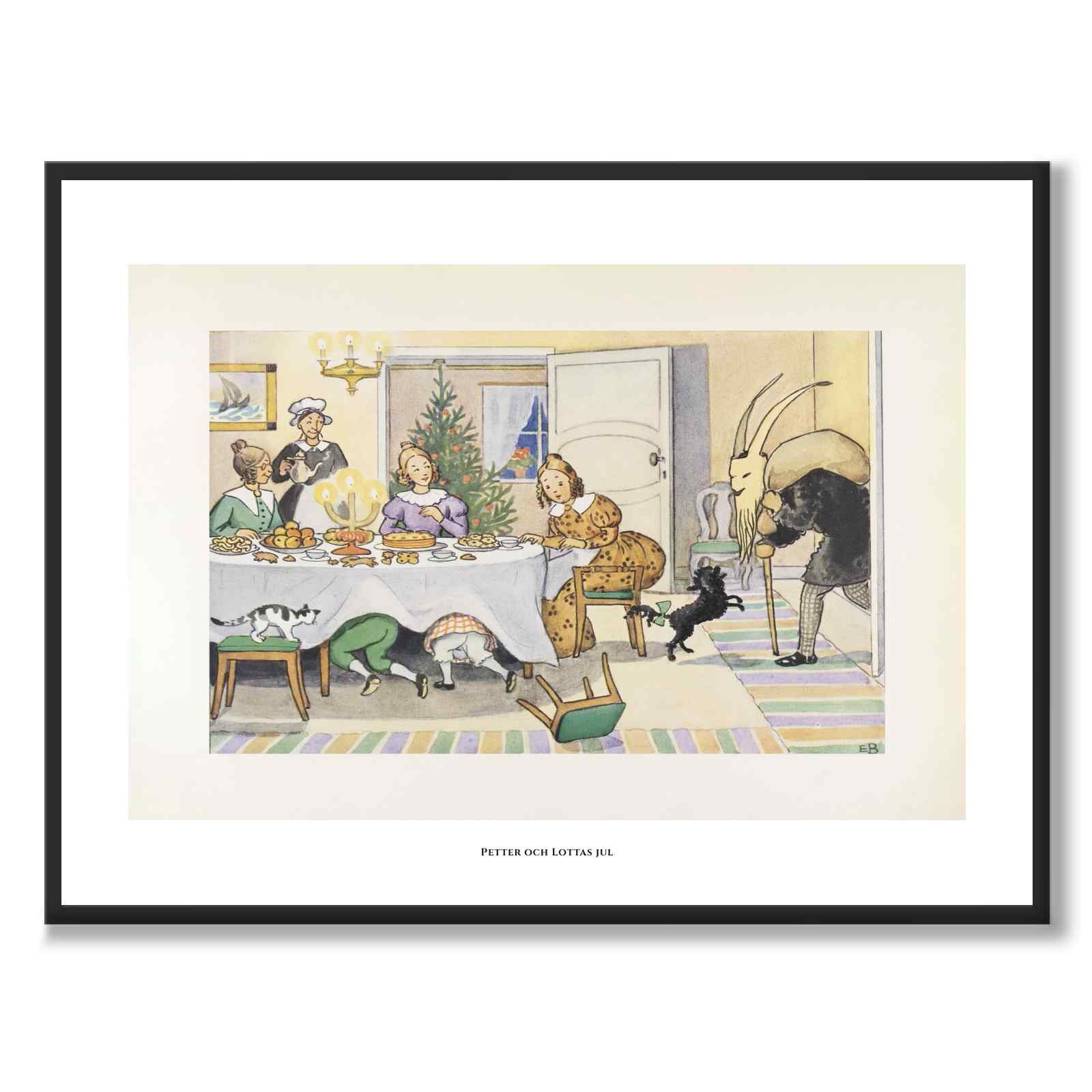 Poster med illustrationen Petter och Lottas jul (år 1947) av den svenska författaren och illustratören Elsa Beskow (1874–1953).